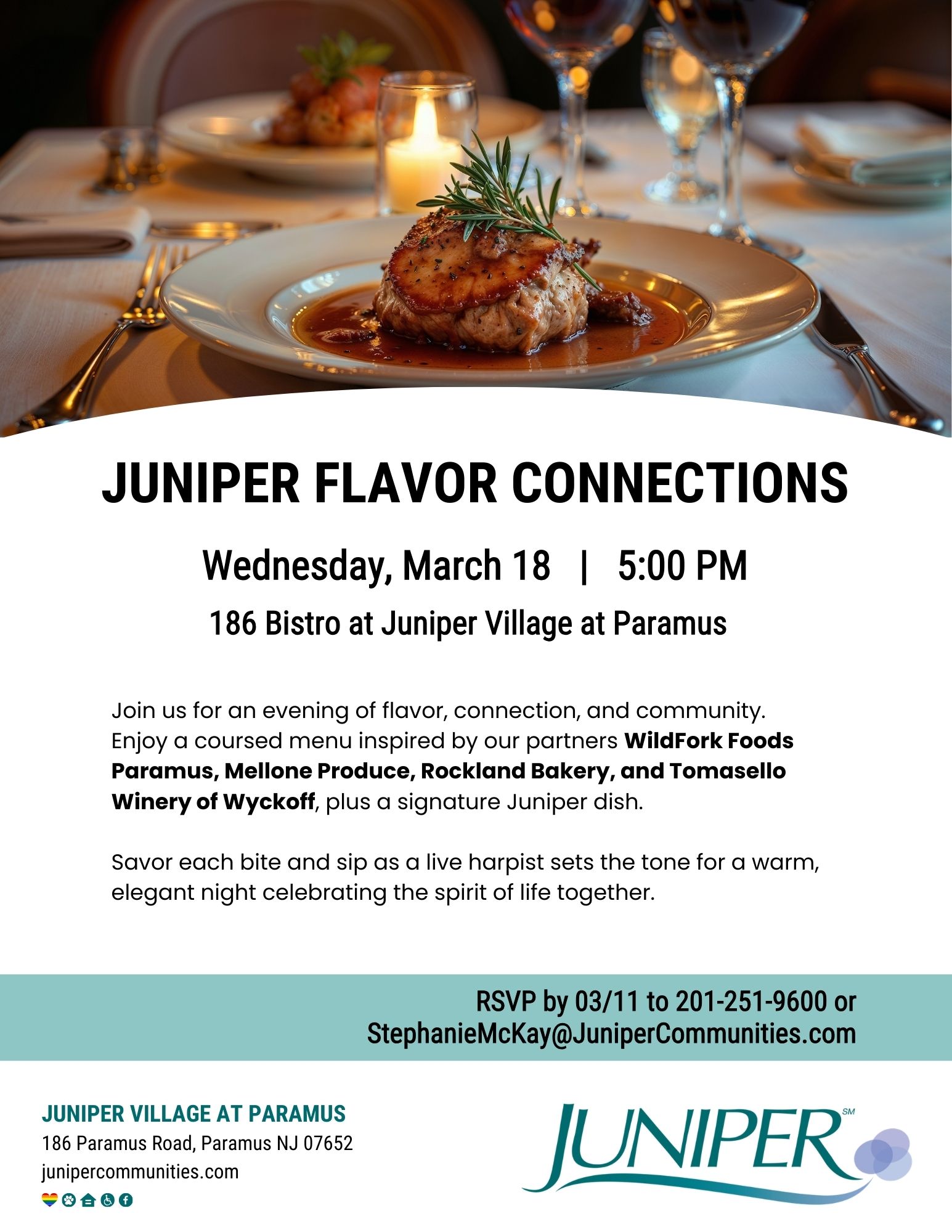 Savor Local Flavors: A Night of Dinner and Music at Juniper Village at Paramus