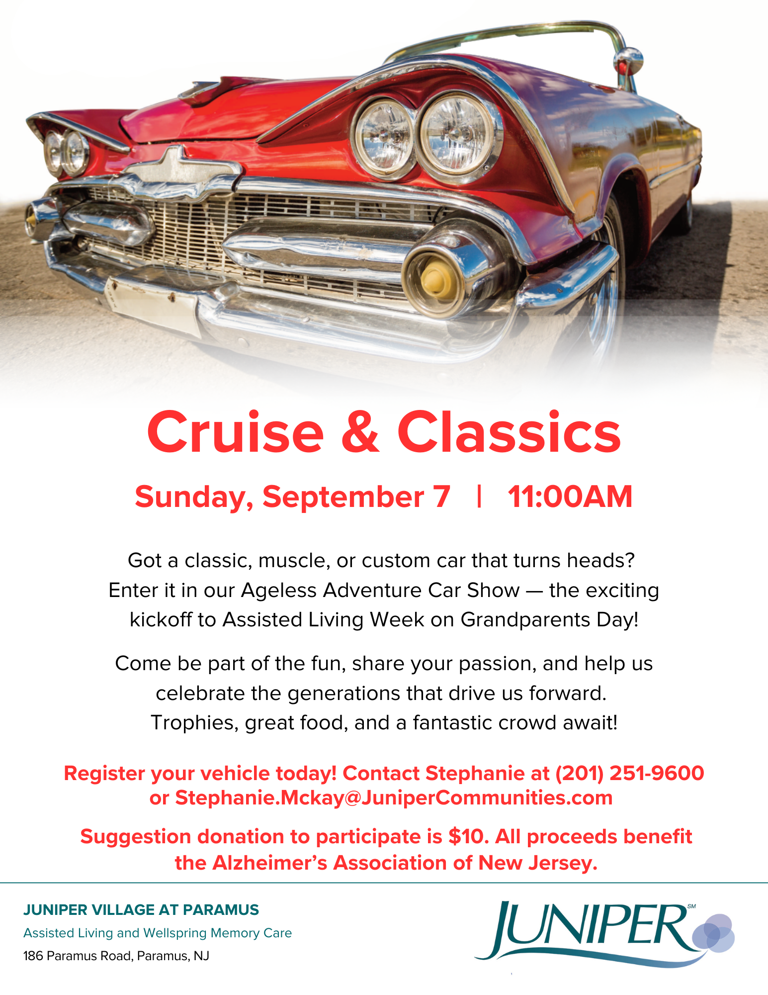 Cruise & Classics Car Show at Juniper Village at Paramus Sep 7 11:00 am - 2:00 pm Cruise & Classics Car Show at Juniper Village at Paramus