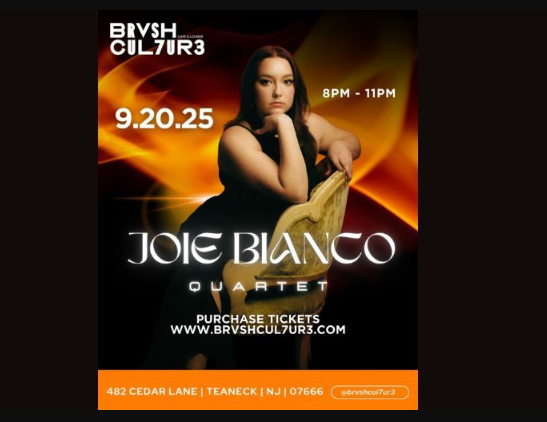 Joie Bianco Quartet at Brvsh Cul7ur3 in Teaneck Sep 20 8:00 pm - 11:00 pm Joie Bianco Quartet at Brvsh Cul7ur3 in Teaneck $34.81