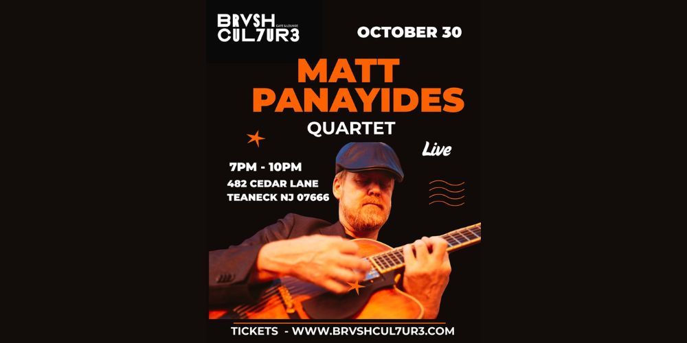 Matt Panayides Quartet atBrvsh Cul7ur3 in Teaneck Oct 30 7:00 pm - 10:00 pm Matt Panayides Quartet atBrvsh Cul7ur3 in Teaneck $27.58
