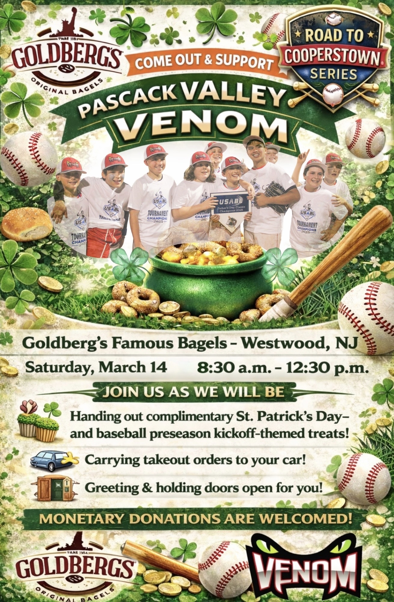 Goldberg’s Famous Bagels Event Helping Send Local Boys to Cooperstown Mar 14 Goldberg’s Famous Bagels Event Helping Send Local Boys to Cooperstown 8:30 am - 12:30 pm