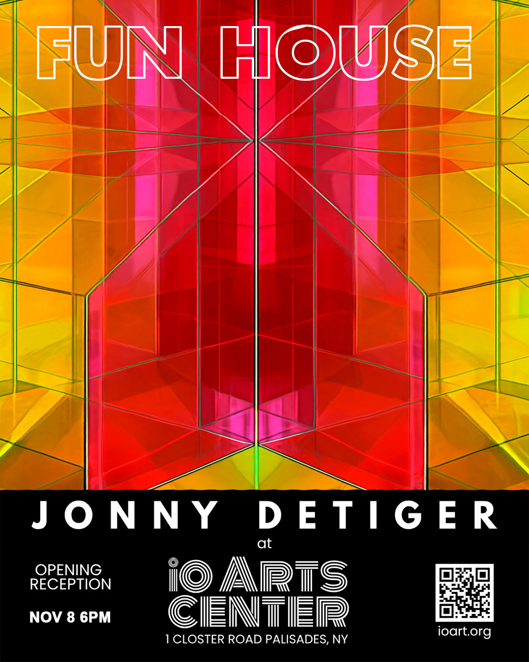 IO Arts Center 1 CLOSTER RD, PALISADES NY, NY, United StatesFun House transforms IO Arts Center into a walk-through artwork of sound, light, color, and scent (Nov 8–Dec 8). Event: Fun House — Jonny Detiger at IO Arts Center Opening Reception: Sat, Nov 8, 6 PM Exhibition Dates: Nov 8–Dec 8, 2025 Hours: Wed–Sun, 11am–7pm; Mon–Tue by appointment Location: IO Arts Center, 1 Closter Rd, Palisades, NY More info: ioart.org Fun House turns […]